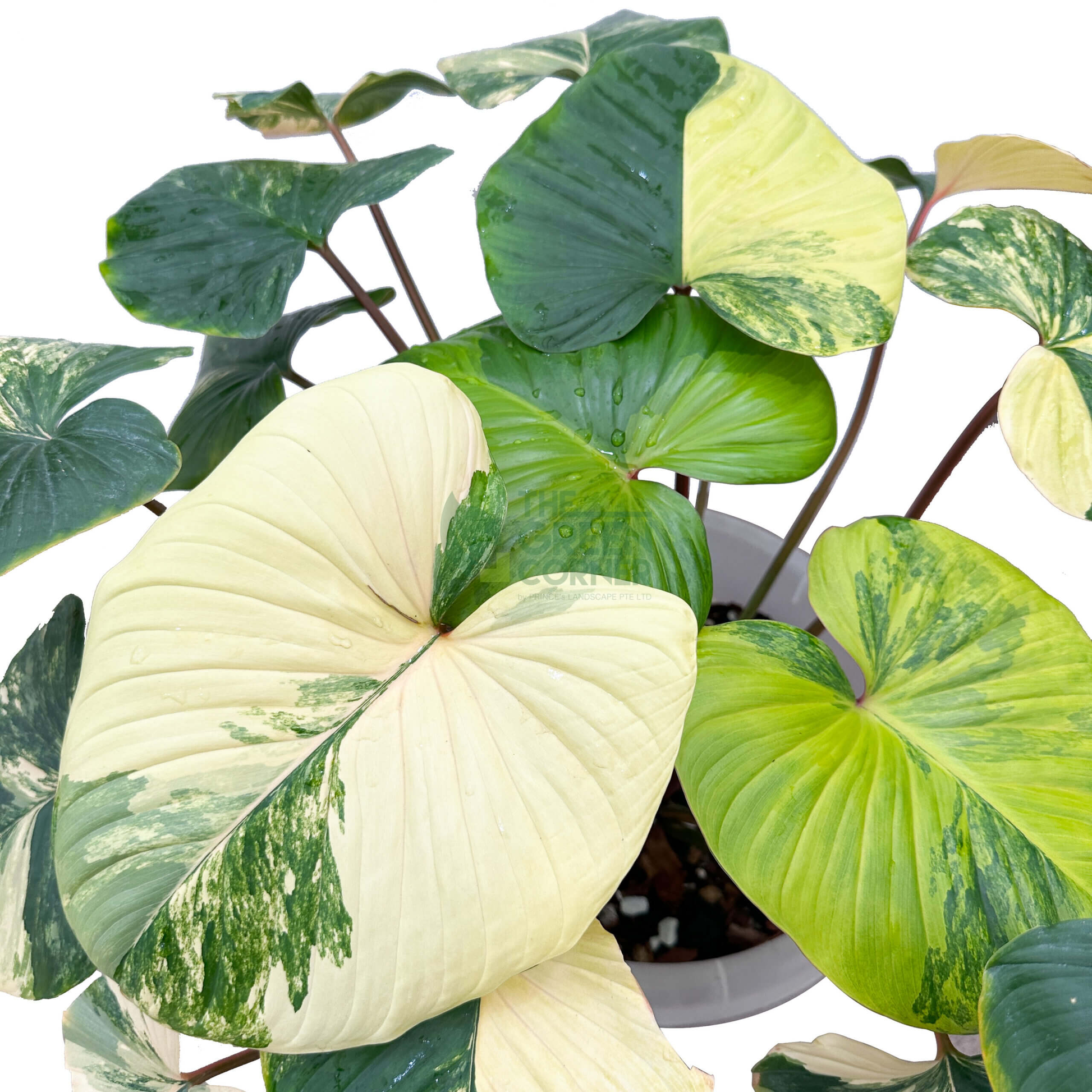 Soft curves, bold colour — the Aurea Variegated Homalomena is a low-key stunner that brings both calm and contrast. With broad, heart-shaped leaves splashed in luminous yellow and cream, it delivers that golden glow without needing the spotlight.